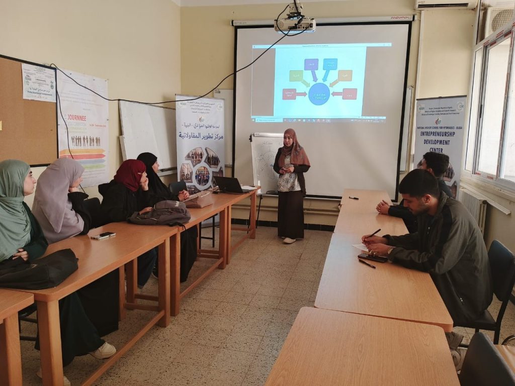 تستمر نشاطات مركز تطوير المقاولاتية بمناسبة الاسبوع العالمي للمقاولاتية، من خلال تنظيم ورشة عمل حول كيفية ايجاد فكرة مؤسسة اقتصادية، من تأطير كل من المدربة مريم ميسوم والدكتور مشان عبد الكريم مسؤول مركز تطوير المقاولاتية